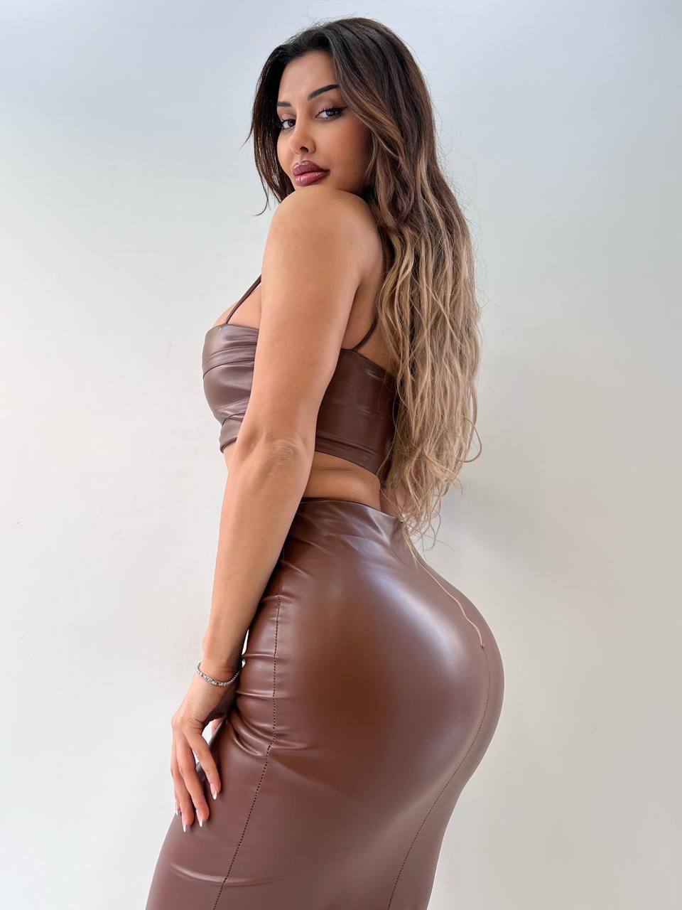 TAN SUIT WITH PU LEATHER CHAIN DETAIL AND SHIRT